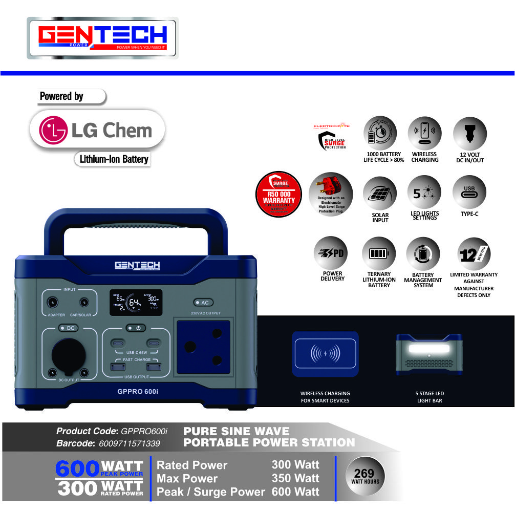 Thank you for purchasing a quality Gentech product. This product contains a limited warranty for a period of 1 year from date of purchase, in domestic applications against faulty workmanship or materials, subject to strict adherence to the correct installation, use, maintenance and application required as detailed in the operating manual. This warranty excludes the wear & tear, charging, and discharging cycles of the lithium-ion battery. Any alteration, modification, abuse, non-adherence to prescribed operating instructions invalidates the warranty.